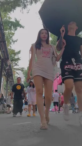 熊猫CD-XM337白色包臀裙美女和男朋友逛街,白色丁字裤【1V】【854M】