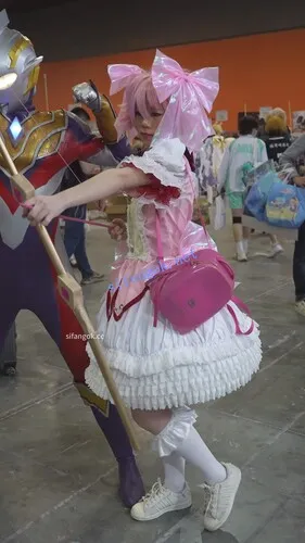 •  小圆cos小姐姐逛街,宽松裙撑微透内正面露黑色。。