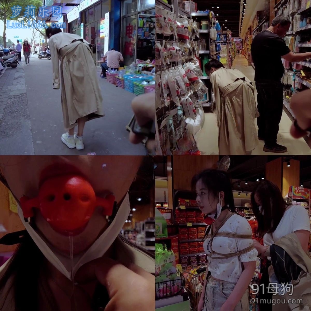 【晓鹿绳艺】【艾琳逛超市】要求带上电击R夹,固定棒子,塞入玩具然后进超市逛街并且遥控强G
